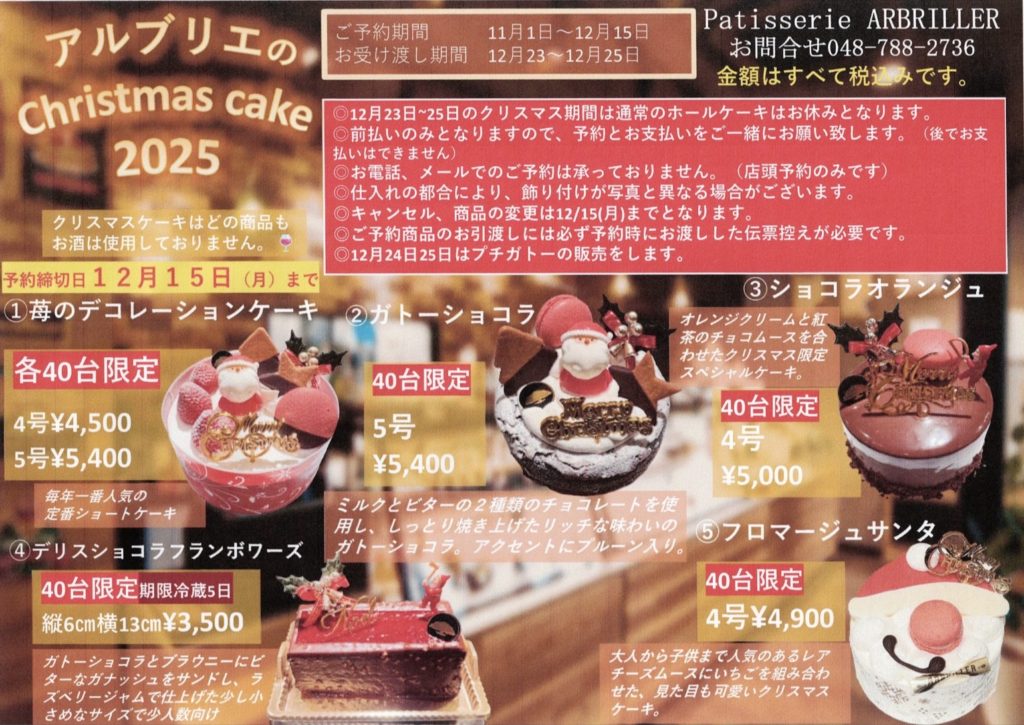 2025年クリスマスケーキご予約受付を11/1より開始いたしました。