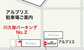 駐車場のご案内です。店舗横に軽自動車2台分と道を挟んだ向かいのマンションを越えたところに一台分駐車場のご用意ございます。…